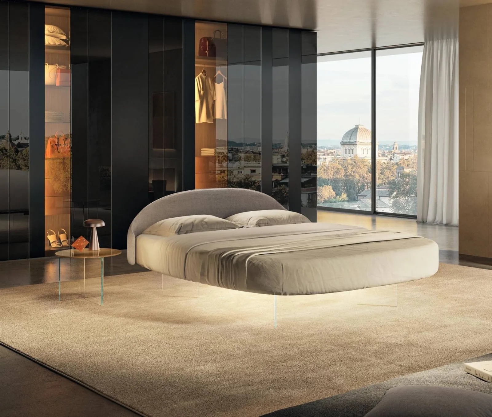 Questa è una soluzione di grande gusto, che rappresenta tutta l'eccellenza garantita dalla pluriennale esperienza del brand nel settore. Per ultimare perfettamente l'arredo della tua zona notte è essenziale valutare gli accostamenti del letto con armadi e comodini, accessori e quant'altro: se vuoi arredi design, il modello nella fotografia fa al caso tuo. Il Letto matrimoniale Roundy Air di Lago è uno dei prodotti più originali dell'azienda, sinonimo di resistenza negli anni, qualità delle finiture e un design unico.