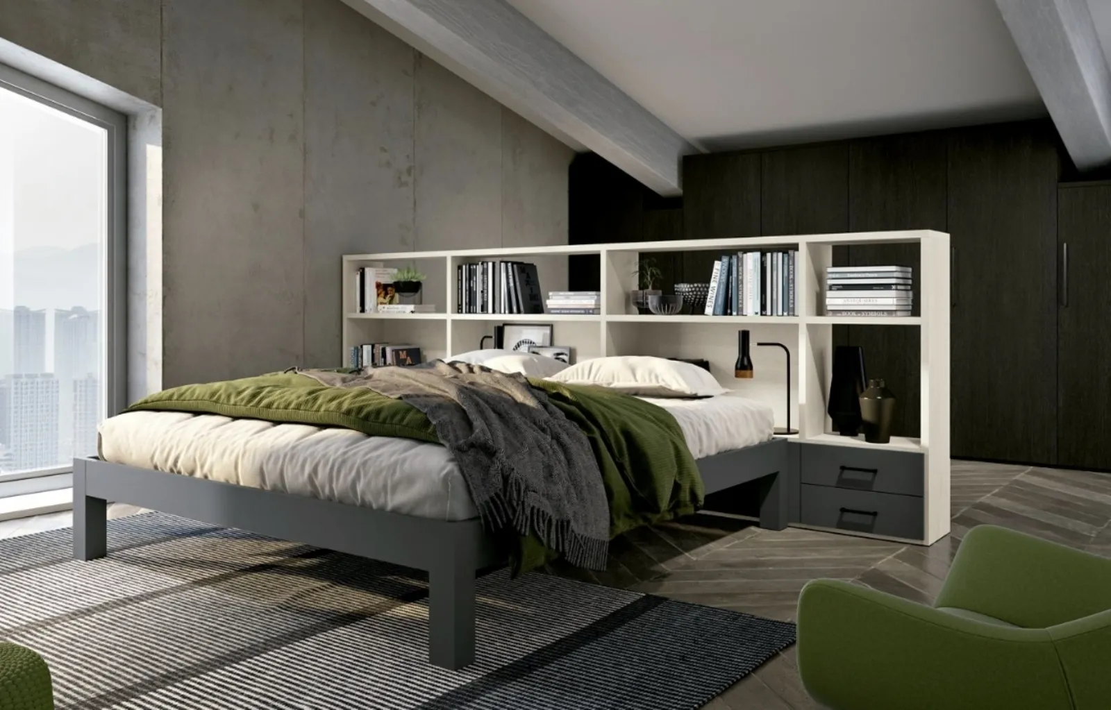 Le Librerie divisorie Ferrimobili sono disponibili in differenti conformazioni: angolari, lineari, sospese e realizzabili su misura per te con molteplici elementi, mensole e vani. Le Librerie moderne sono sempre tanto amate per predisporre il soggiorno e le pareti, coniugando ottimamente doti di funzionalità e stile. Il living è, in assoluto, la zona della casa dove ci dedica al relax ogni giorno, conversando con familiari e amici, riposando in solitudine o guardando la TV. Contattaci per info e preventivi sul modello visibile in foto: se desideri ultimare stanze moderne, allora questa libreria dalle forme decise fa per te.
